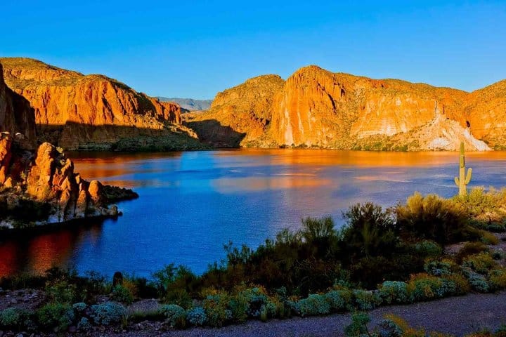 Discover Arizona’s rugged desert landscape on a 7-hour adventure from Phoenix along the iconic Apache Trail. This scenic drive takes you deep into the Superstition Mountains, where you’ll encounter breathtaking views and rich history of the Old West. Marvel at the stunning blue waters of Canyon Lake and explore the quirky charm of Tortilla Flat, a former stagecoach stop. Uncover fascinating legends of lost gold mines and Native American history, while capturing incredible photos of majestic saguaros and unique rock formations.